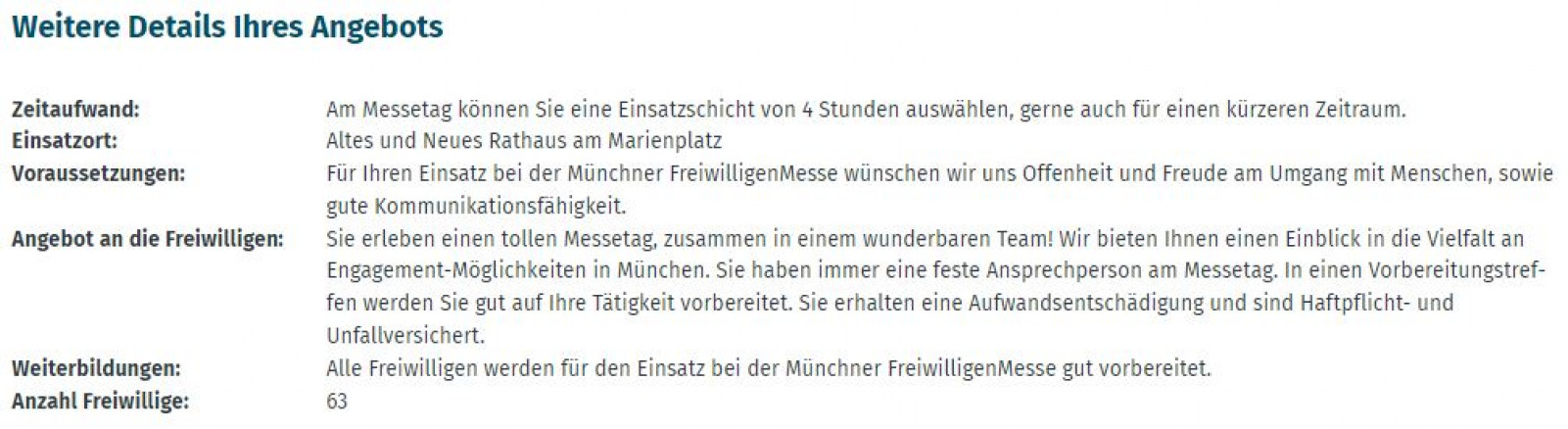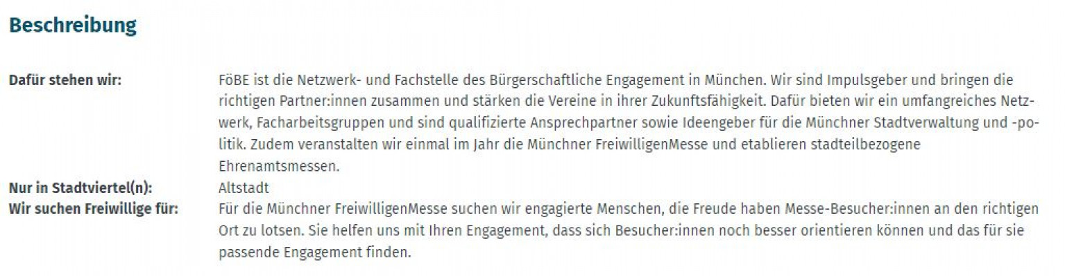 Die Organisation ist bereit, sich im Stadtteil, mit Freiwilligenagenturen, mit Stiftungen, mit Facharbeitskreisen auf kommunaler Ebene oder mit städtischen Referaten zu vernetzen.